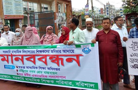 সরকারি মাধ্যমিক বিদ্যালয়ে নবম গ্রেড দাবীতে বরিশালে মানববন্ধন