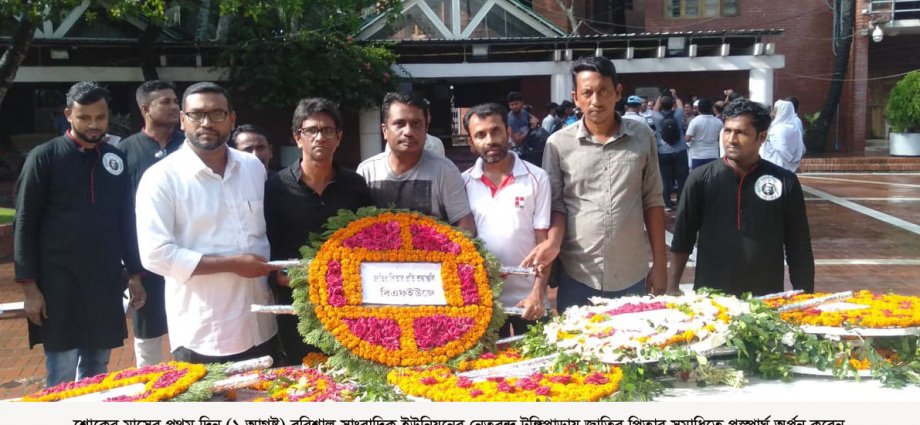 নাগরিক রিপোর্ট ॥ শোকের মাসে জাতির পিতা বঙ্গবন্ধু শেখ মুজিবুর রহমান এর মাজার জিয়ারত করলেন বরিশাল সাংবাদিক ইউনিয়ন(বিজেইউ) নেতৃবৃন্দ। বৃহস্পতিবার টুঙ্গিপাড়ায় গিয়ে বরিশাল সাংবাদিক ইউনিয়নের সাধারন সম্পাদক স্বপন খন্দকারের নেতৃত্বে বঙ্গবন্ধুর সমাধিতে পুস্পার্ঘ অর্পন করেন নেতৃবৃন্দ। এসময় বঙ্গবন্ধুর মাজার ও তার স্মৃতিবিজড়িত বাসভবন পরিদর্শন করেন। বিজেইউ ১৫ আগস্ট স্মরনে নানা উদ্যোগ গ্রহন করেছে বলে জানা গেছে।