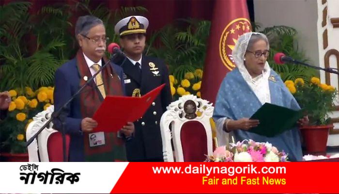 বৃহস্পতিবার সন্ধ্যা ৭টায় বঙ্গভবনে শপথ নেন তিনি। রাষ্ট্রপতি মো. সাহাবুদ্দিন তাকে শপথ পাঠ করান। এ নিয়ে টানা চতুর্থবারের মতো প্রধানমন্ত্রী হিসেবে শপথ নিলেন শেখ হাসিনা।