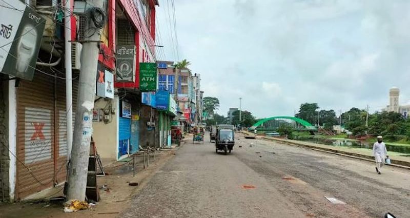 আজ বৃহস্পতিবার ভোর থেকে এখনো পর্যন্ত রাস্তা-ঘাট, হাট-বাজারে মানুষের আনাগোনা নেই বললেও চলে। ব্যবসাপ্রতিষ্ঠান বন্ধ রয়েছে। কারফিউয়ের মধ্যে আইন শৃঙ্খলা রক্ষাবাহিনীর সদস্যদের কোনো তৎপরতা দেখা যাচ্ছে না। নেই টহলও। তবে জেলা কারাগারের সামনে আইন শৃঙ্খলা বাহিনী মোতায়েন রয়েছে।