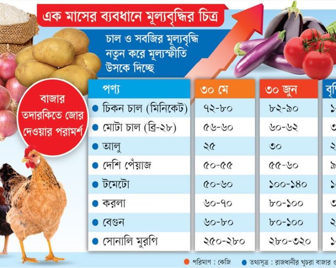ঈদের পর রাজধানীসহ দেশের বাজারে চাল, সবজি ও মুরগিসহ নিত্যপণ্যের লাগামহীন দাম বাড়ায় চরম ভোগান্তিতে পড়েছেন সাধারণ মানুষ। গত একআরও পড়ুন…
