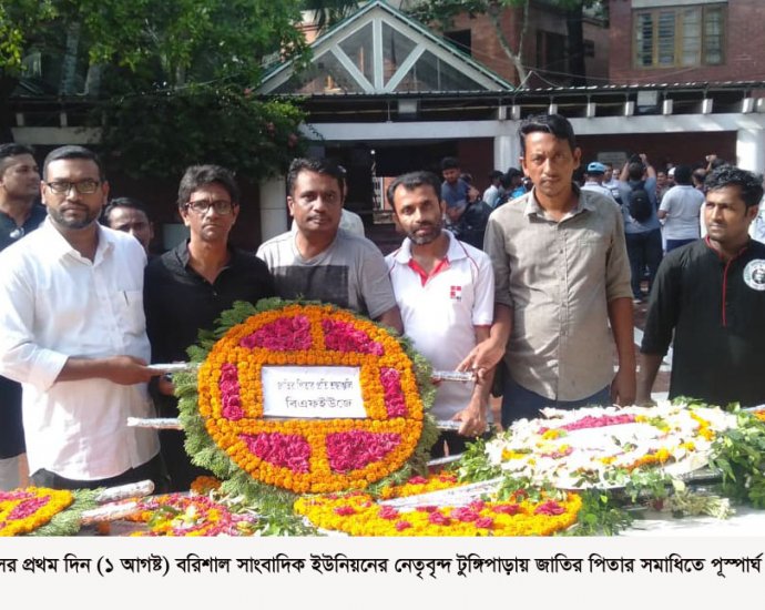 নাগরিক রিপোর্ট ॥ শোকের মাসে জাতির পিতা বঙ্গবন্ধু শেখ মুজিবুর রহমান এর মাজার জিয়ারত করলেন বরিশাল সাংবাদিক ইউনিয়ন(বিজেইউ) নেতৃবৃন্দ। বৃহস্পতিবারআরও পড়ুন…
